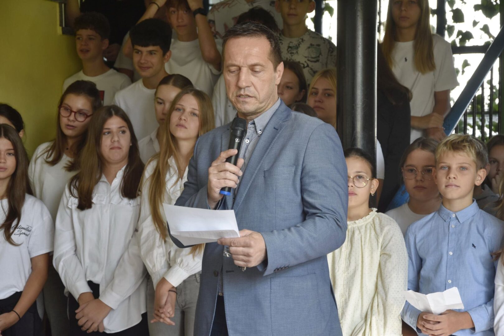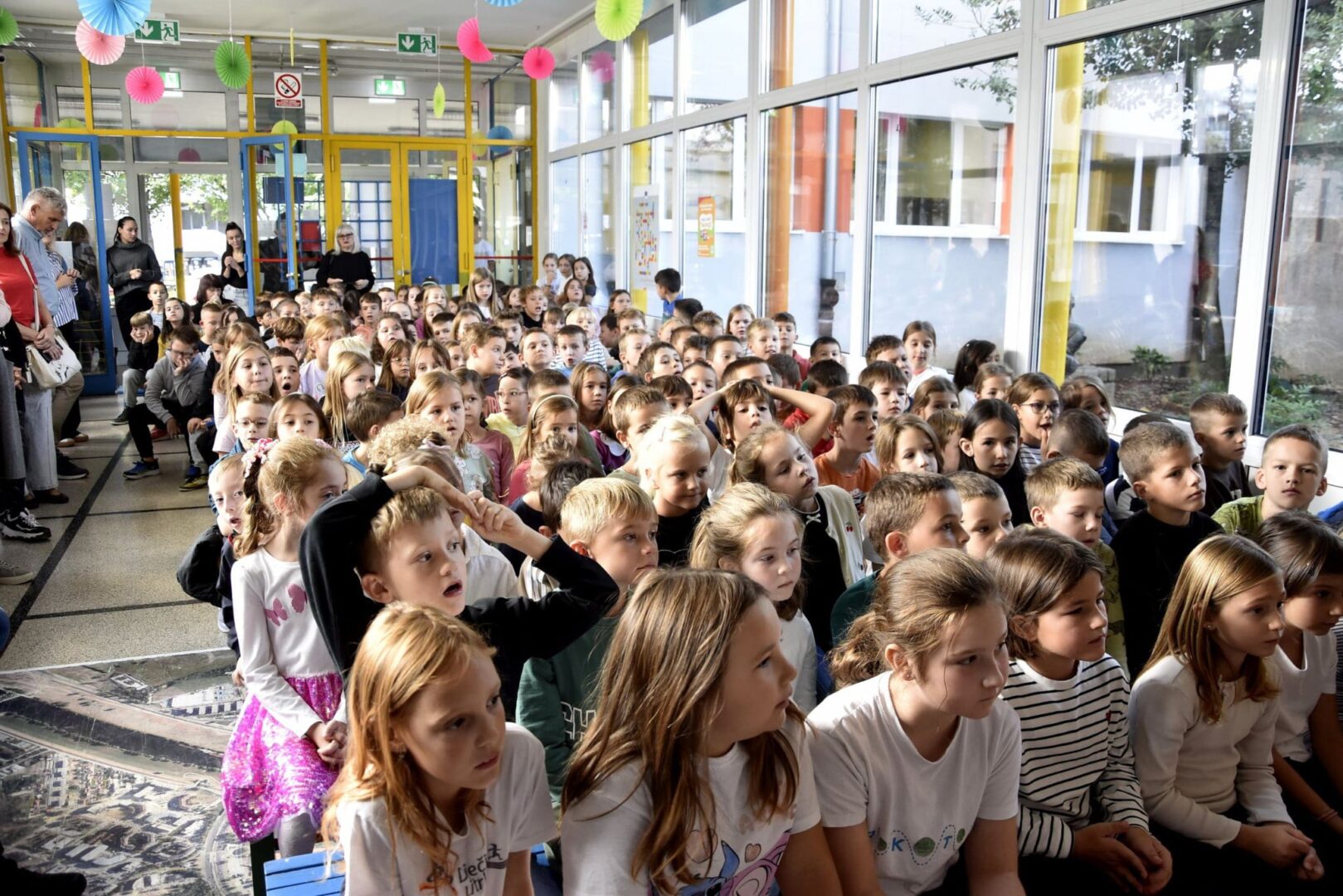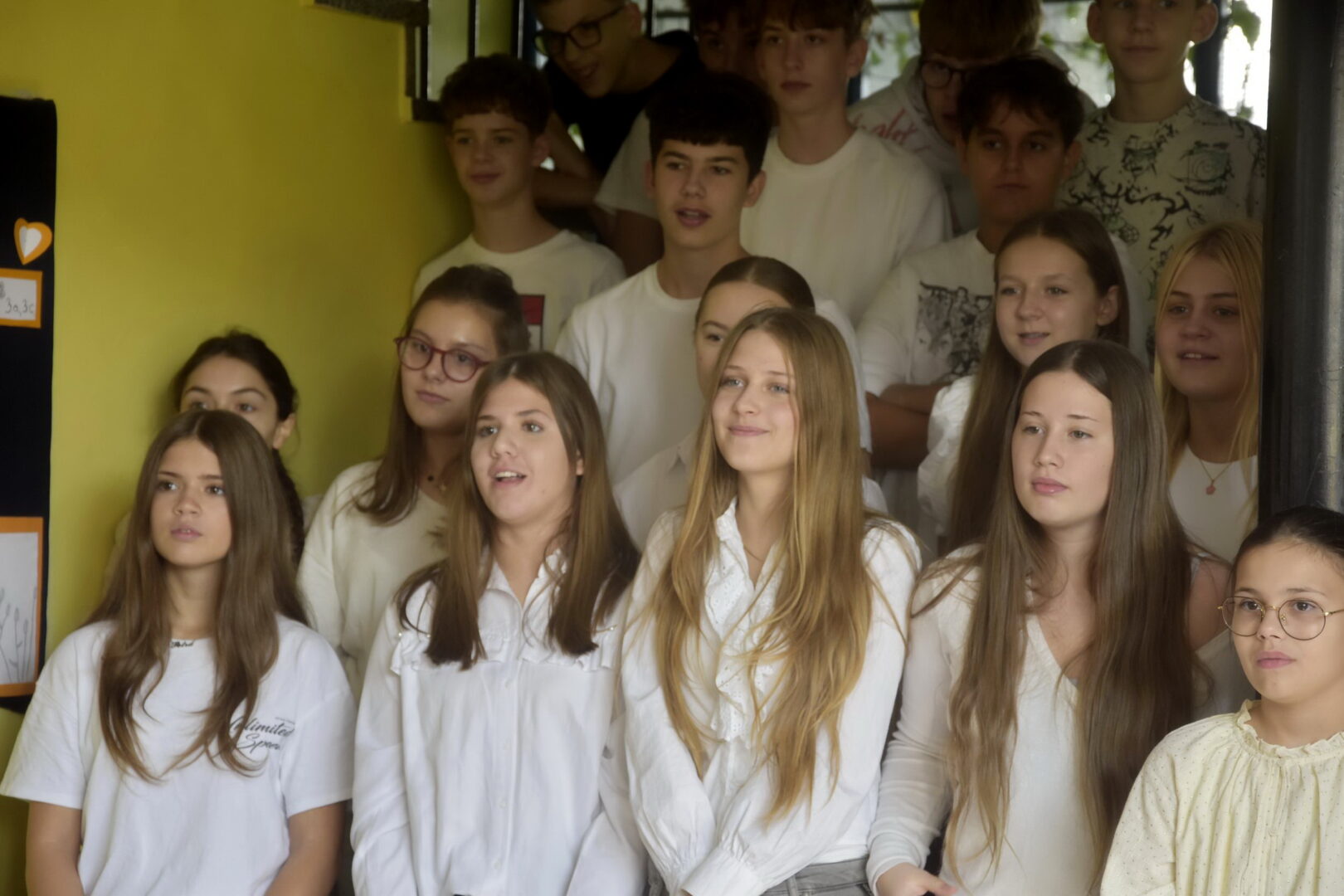 Na početku priredbe, pod vodstvom s. Mare, pjesma naših radosnih i raspjevanih osmaša i petaša odjekivala je iz njihovih mladenačkih srdaca prostorima škole. Pjesmom su zahvaljivali Bogu za svu dobrotu koju nam daje i slavili Krista, svoga Prijatelja i Učitelja. Učenici su pod vodstvom učiteljice Marite Škanata i vjeroučiteljice Violeta Raguž izveli predivne recitacije i tako nas potaknuli i pozvali na dobrotu i zahvalnost Bogu i čovjeku. Uslijedila je zajednička pjesma „Mi želimo uzdić Isusa“ koju smo svi zapjevali uz pokrete a koje je učenike naučila vjeroučiteljica Violeta.