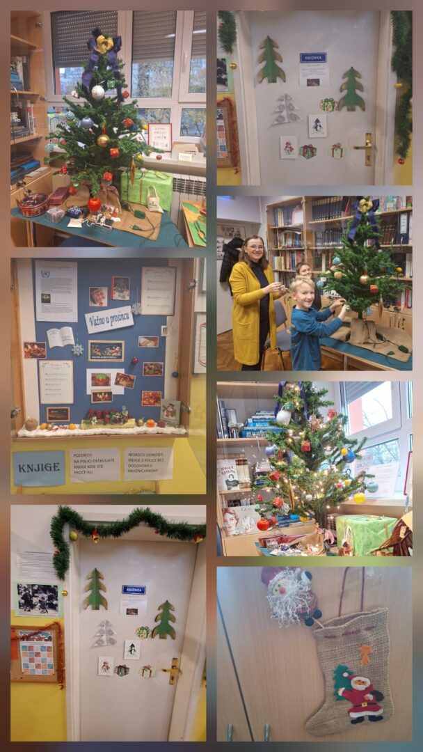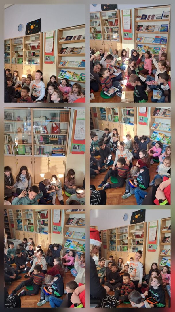 Kao i prošlih godina i 2025. godinu ispratili smo veselim druženjima u našoj knjižnici. U projektu pod nazivom Božićna tišina sudjelovali su učenici razredne nastave od 1. do 3. razreda. Čitajući priče o Djedu Mrazu, malom sobu Rudiju, sloniću Elmeru i priče o radionici izrade dječjih igračaka dotaknuli smo se tema darivanja, zajedništva, obiteljskog okupljanja i kako se osjećamo kad primamo darove ili ih darujemo nekome drugome. U 2. a i 2.b razredu obradili smo lektiru Božićna bajka. Uređujući knjižnicu, okitili smo bor, naučili što je božikovina, da Božić možemo dočekati i na plaži bez snijega, leda i hladnoće i da pokušamo što više činiti dobro oko sebe jer darovi ne moraju biti samo skupe igračke koje su poželjeli, darovati se može i osmijeh i zagrljaj i lijepa riječ.